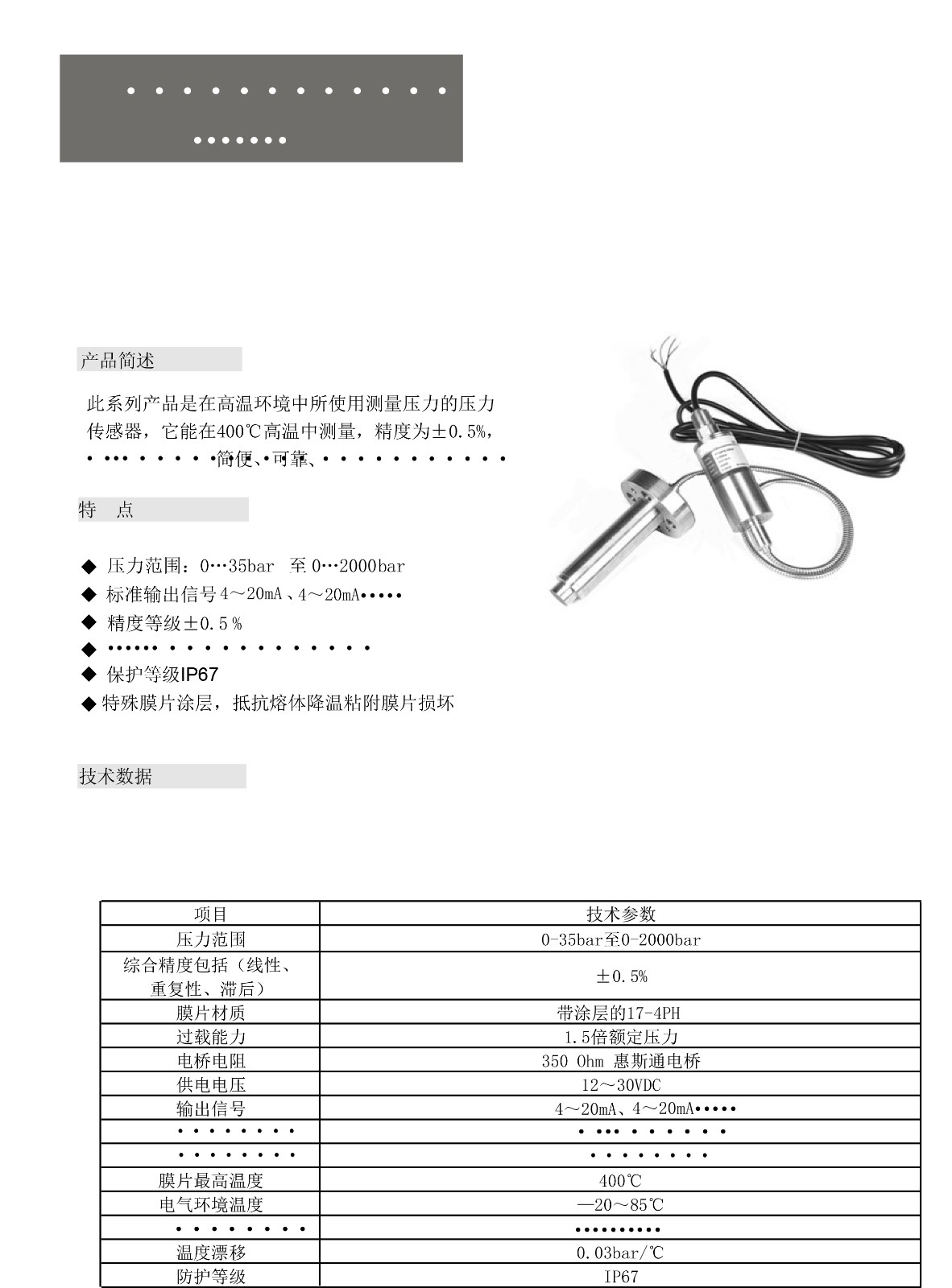 SSM-P208高温熔体压力传感器资料